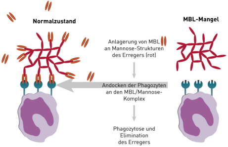 Das Mannose-bindende Lektin (MBL) gehört zu den wichtigsten Komponenten der angeborenen Immunabwehr. Ein Mangel an diesem Akute-Phase-Protein ist mit gehäuften hartnäckigen Infektionen bzw. einer erhöhten Infektanfälligkeit verbunden.