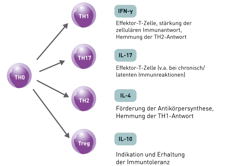 Zahlreiche chronische Erkrankungen gehen mit einer gestörten Balance der TH-Zell-Subpopulationen einher. Dieses betrifft chronische Infektionen, Allergien, Autoimmunreaktionen und andere. Mit dem TH1/TH2/TH17-Zytokinprofil können selektive Defekte detektiert werden (z.B. IFN-γ-Defizienz bei zellulärem Immundefekt), aber vor allem auch die wichtige, aktuell bestehende TH-Balance ermittelt werden. Die Zuordnung zu TH-Dominanztypen allein an hand der Krankheitsbilder oder gar eine Planung immunmodulatorischer Therapiemaßnahmen ist ohne diese Immunanalyse nicht möglich, weil die TH-Balance sehr häufig stadienabhängig ist (v.a. bei chronischen Infektionen) und selten nur ein isoliertes T-zellulär bedingtes Entzündungsgeschehen beim Patienten vorliegt. Auch ist ohne fundierte Untersuchung die TH1 und die TH17-Dominanz nicht zu unterscheiden.