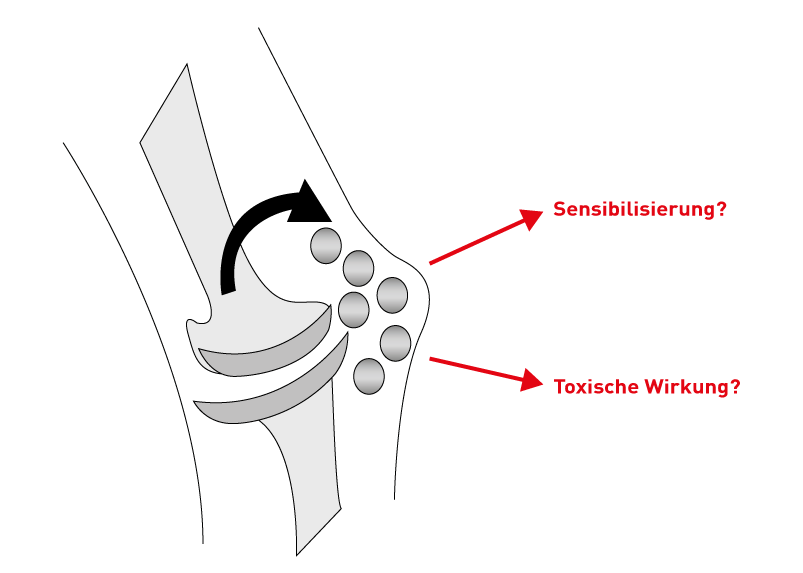Die Ursachen für nötige Revisionen sind vielfältig. Neben einem „Verbrauch“ des Gleitkunststoffs oder Infektionen spielen Lockerungen von Prothesenteilen eine entscheidende Rolle, für die entzündliche Veränderungen im implantatnahen Gewebe verantwortlich sein können. In jüngster Zeit werden vermehrt systemische „Nebenwirkungen“ diskutiert, wie lokale oder auch disseminierte Ekzeme, Wundheilungsstörungen, Einflüsse auf systemische Entzündungsprozesse oder auch potentiell toxische Effekte durch in den Organismus frei werdende Metallionen.