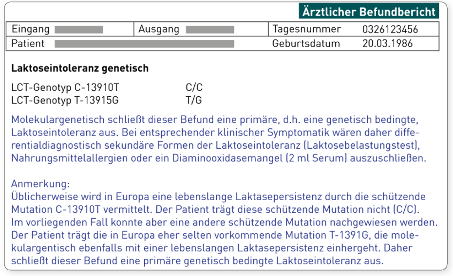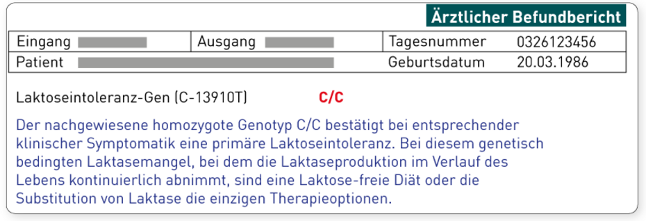 Das bedeutet, dass in Deutschland ca. 15% der Bevölkerung an einer primären (genetisch bedingten) Laktoseintoleranz leiden. Durch den genetischen Test kann heute eine sichere Zuordnung der genetischen Disposition zu einer primären (genetisch bedingten) Laktoseintoleranz erfolgen.